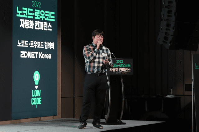 주만호 WBJ소프트 대표는 지난 달 열린 '노코드 로우코드 자동화 컨퍼런스 2022'에서 노코드를 활용해 고객사의 업무 프로세스 및 운영 과정을 개선한 방법에 대해 소개했다.