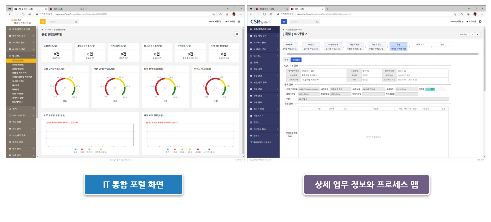 ITSM / 형상관리 / 프로젝트 관리 등 관리 분야별로 통합된 정보를 한눈에 파악하도록 합니다.